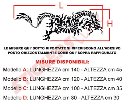 Vendesi adesivo modello Drago 9 per cofano auto, adatto a tutte le auto, l'adesivo rappresenta un drago molto particolareggiato... Il materiale utilizzato è una pellicola professionale di ottima qualità, di soli 70 micron, perfettamente conformabile anche nelle superfici irregolari, studiata per essere applicata su automezzi, veivoli, nautica, ecc...