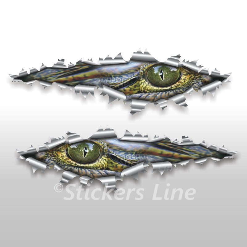 Adesivi dalla grafica fotorealistica, nel disegno è rappresentato un effetto che simula uno strappo di lamiera all'interno l'occhio di un coccodrillo, per rendere il vostro fuoristrada ancora più aggressivo.