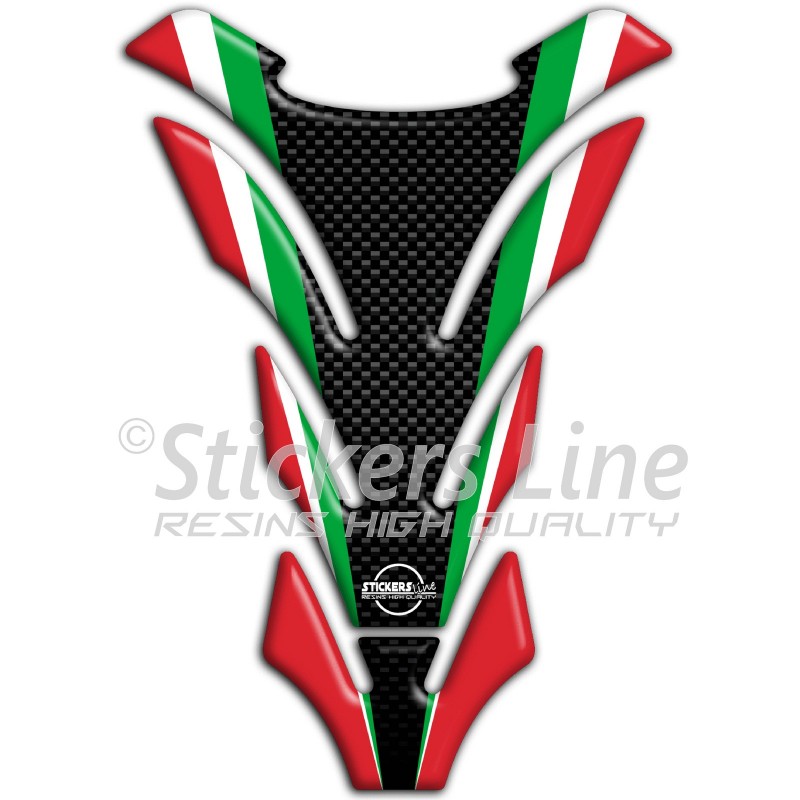 Adesivo paraserbatoio resinato fondo effetto carbonio + tricolore italiano, misura standard per tutti i odelli di moto.