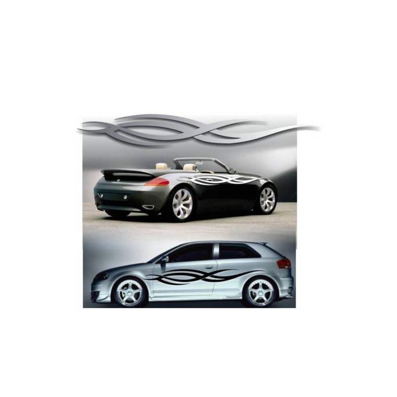 Vendesi coppia di adesivi (pezzi 2) per fiancate, tettuccio, e/o cofano auto, camion, fuoristrada, ecc. modello TRIBAL 2, adatte a tutte le auto, ed altri automezzi. Il materiale utilizzato è una pellicola di ottima qualità, di soli 70 micron, studiata per essere applicata su automezzi, veivoli, nautica, ecc...La forma di questa coppia di tribali è di una bellezza e semplicità unica accompagnata da una linea morbida e filante migliorando notevolmente l'estetica della vostra auto...