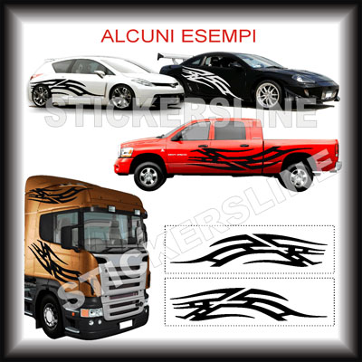 Vendesi coppia di adesivi tribali (PEZZI 2), modello TRIBAL 5, adatte a tutte le auto, fuoristrada, camion, ed altri veicoli. La forma di questi tribali è raffinata ed originale...Il materiale utilizzato è una pellicola di ottima qualità, di soli 70 micron, con un ottima conformabilità, studiata per essere applicata su automezzi in generale.