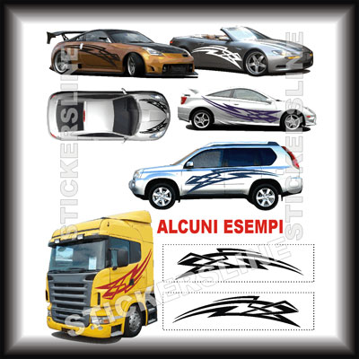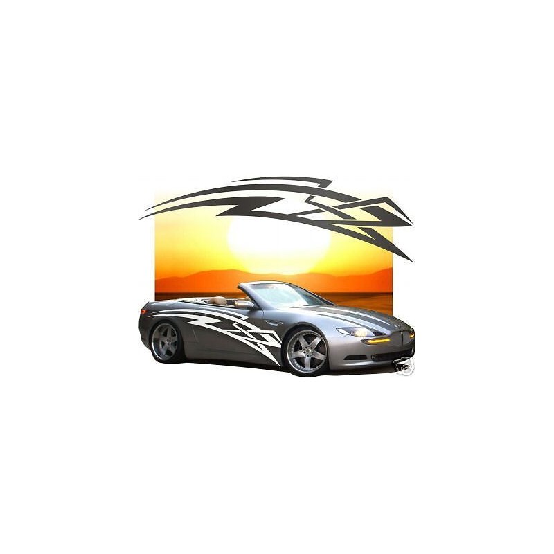 Vendesi coppia di tribali (PEZZI 2) per fiancate, cofano e/o tettuccio, applicabili su tutte le auto, fuoristrada, camion, ecc. modello TRIBAL 7, (bellezza mozzafiato) questi tribali si adatteranno perfettamente alla vostra auto, la forma è aggressiva è decisa, consigliato per auto al top. Il materiale utilizzato è una pellicola pregiata di qualità, di soli 70 micron di spessore, con un ottima conformabilità, studiata per essere applicata su automezzi in generale.