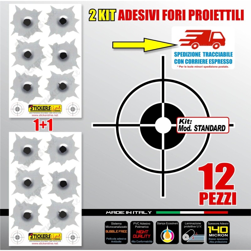 12 adesivi in vinile stampato, laminato e intagliato, riproducenti il foro di un proiettile del colpo di una pistola calibro 9 mm, questi adesivi sono stati realizzati con stampa ecosolvente con inchiostri molto resistenti e laminati in superficie con filtro UV per una massima resistenza agli agenti atmosferici. Applicabili su moto, scooter, casco, auto, frigorifero, libri, e ogni altra superficie liscia e rigida di qualsiasi colore.12ALCUNI ESEMPI: