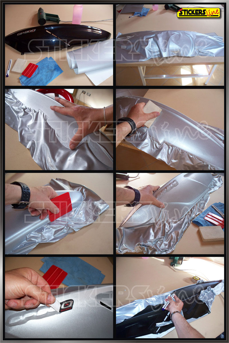 Pellicola di tipo CAST antigraffio, termoformabile, di lunghissima durata, spessore 120 micron. Durante l'applicazione avrete la possibilità di rimuovere l'adesivo per spostarlo o cambiarne la posizione prima di fissarlo definitivamente, osservate (nella foto quì sotto). La parte sottostante della pellicola ha un sistema microcanalizzato chiamato "Air Free FT-System" per permettere all'aria di fuoriuscire da sotto l'adesivo durante la lavorazione senza lasciare bolle, alta resistenza contro gli agenti atmosferici, al tatto la trama in suprficie dell' adesivo risulta con effetto rilievo.