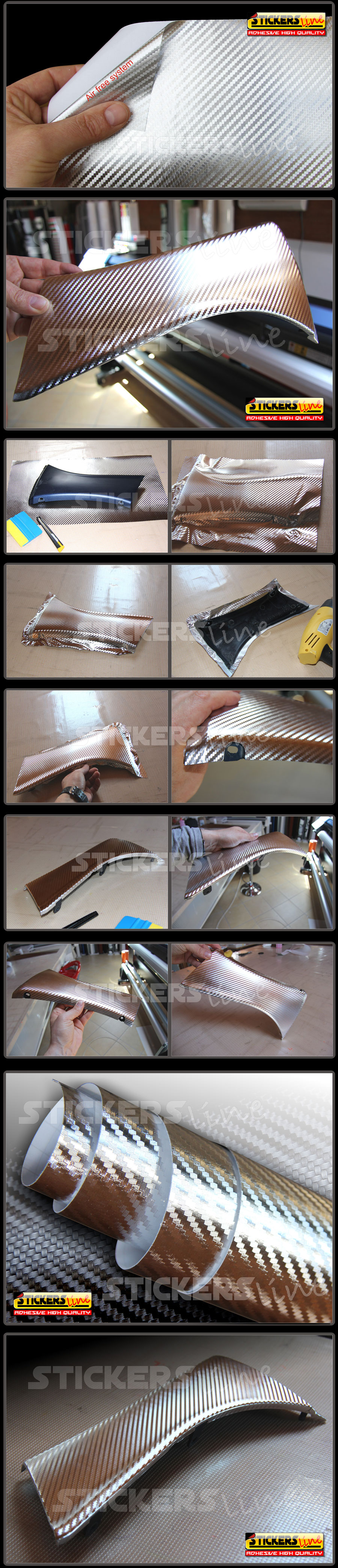 Pellicola carbonio calandrata Easy antigraffio, termoformabile, di lunga durata, spessore 140 micron. Durante l'applicazione avrete la possibilità di rimuovere l'adesivo per spostarlo o cambiarne la posizione prima di fissarlo definitivamente. La parte posteriore della pellicola ha un sistema microcanalizzato chiamato "Air Free System" per permettere all'aria di fuoriuscire da sotto l'adesivo durante la lavorazione senza lasciare bolle, alta resistenza contro gli agenti atmosferici, al tatto la trama in suprficie dell' adesivo risulta con effetto rilievo.