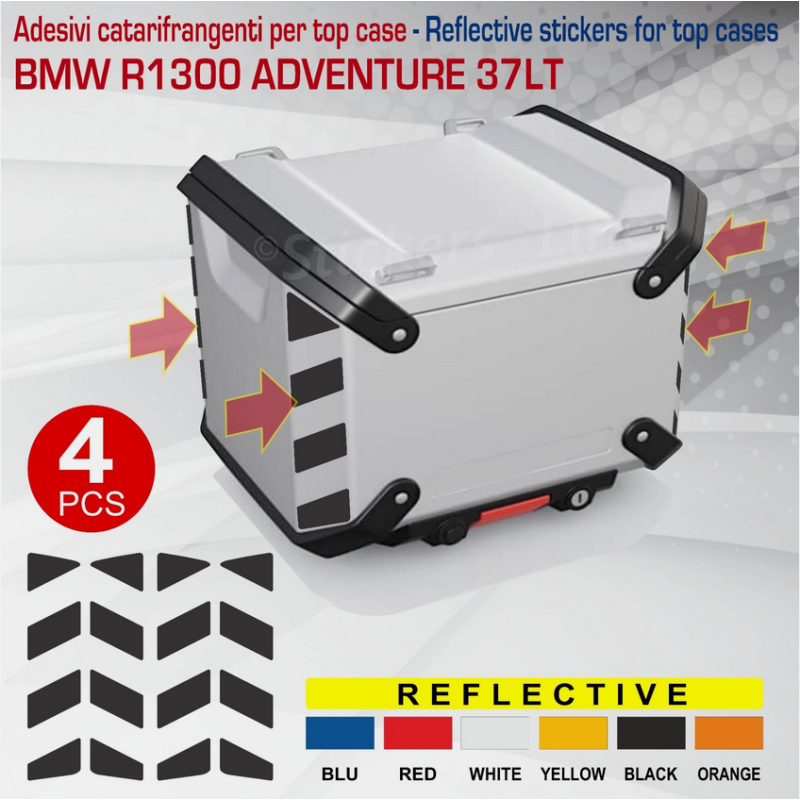 4 Adesivi catarifrangenti riflettenti compatibili "stile tratteggiato" da applicare sui 4 lati del top case BMW R1300GS Adventure