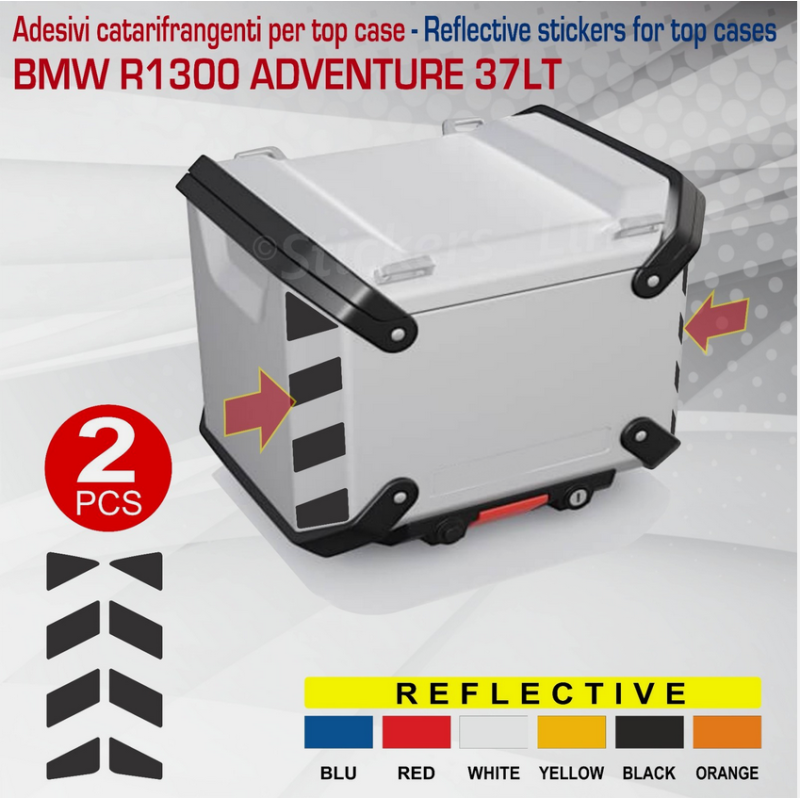 2 Adesivi catarifrangenti riflettenti compatibili "stile tratteggiato" da applicare sui 2 lati del top case BMW R1300GS Adventure