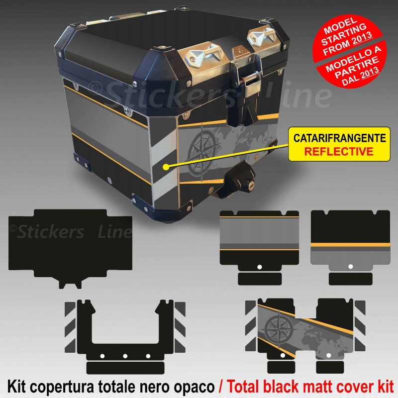 Kit copertura COMPLETA adesivi BUSSOLA, stampati su fondo nero opaco, per la valigia superiore TOP CASE BMW R1250 GS Stile Exclusive.