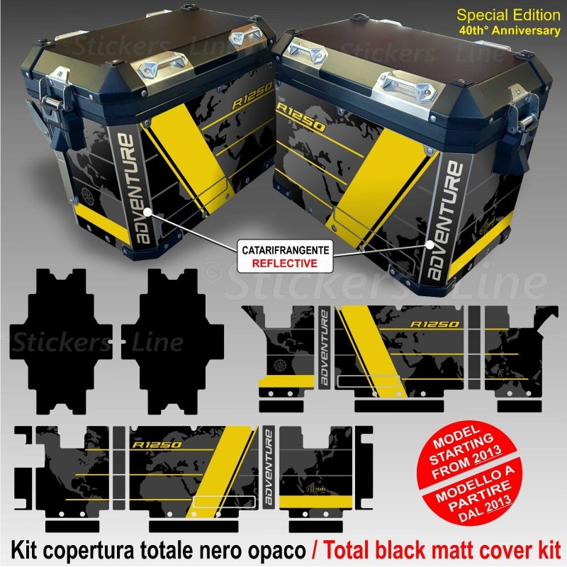Kit copertura COMPLETA adesivi stile 40° Anniversario compatibili per le 2 valigie laterali BMW R1250 GS
