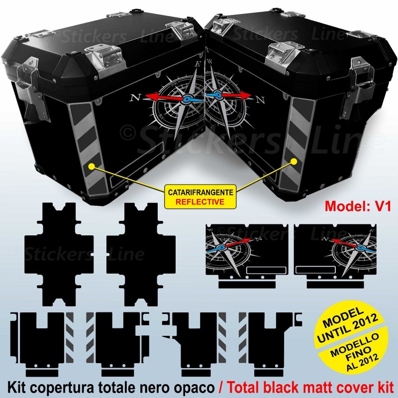 Kit copertura COMPLETA adesivi BUSSOLA, stampati su fondo nero opaco, per le 2 borse laterali BMW R1200GS