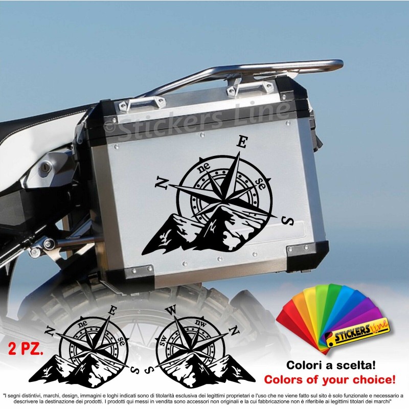 2 Adesivi montagna rosa dei venti bussola per valigie moto GS o altri modelli