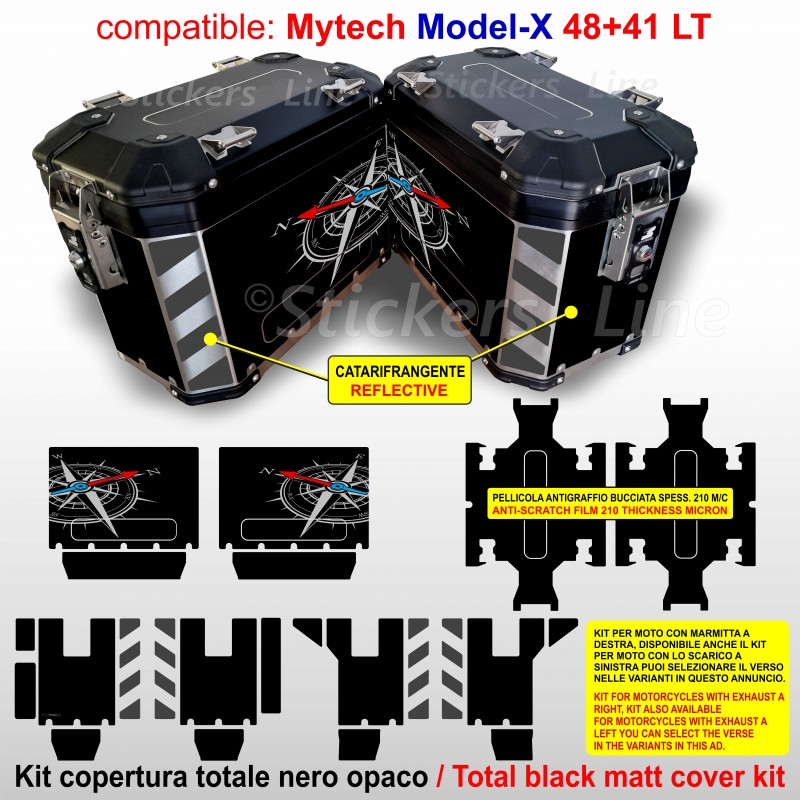 Kit copertura COMPLETA adesivi ROSA DEI VENTI compatibili per le 2 valigie laterali MyTech Model - X 48 + 41 L.