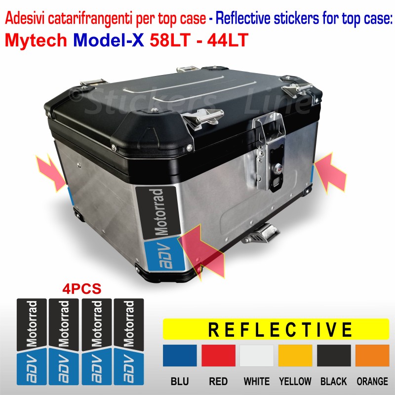4 Adesivi Catarifrangenti Mytech Model X 58 - 44 Lt TOP CASE ADV Reflective bicolor