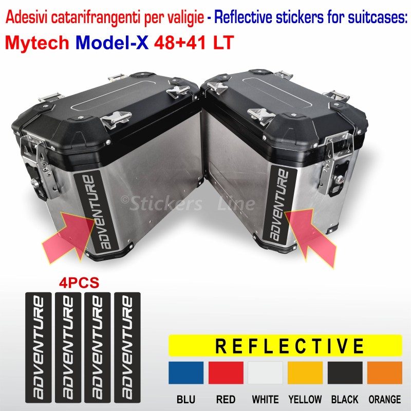 4 Adesivi Catarifrangenti Valigie LATERALI Mytech Model X 41 + 48 Lt ADV Reflective