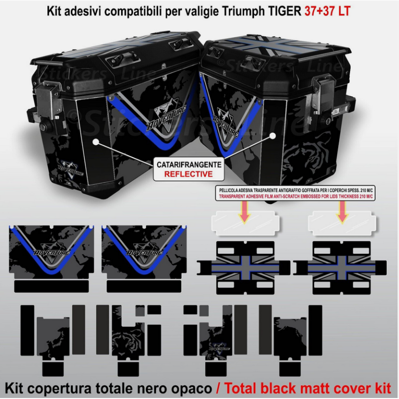 Adesivi per valigie Expedition Triumph Tiger 800 850 900 1200 blue-black