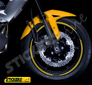 Kit completo di strisce a doppio bordo con parte iniziale della striscia a punta e parte finale a scacchi " lo stile personalizzato di questi adesivi renderà la tua moto ancora più bella ed accattivante", ad ogni lato della ruota andranno applicate tre strisce adesive a mezza luna equidistanti tra di loro (vedi foto in basso) il kit comprende 12 pezzi l'occorrente per la decorazione completa, più altri 2 pezzi di scorta in omaggio, kit adatto per cerchi da 17 pollici di qualsiasi marca e anno di fabbricazione, questi adesivi sono già precurvati e facili da montare senza dover smontare le ruote dalla tua moto per applicarli.