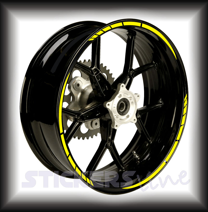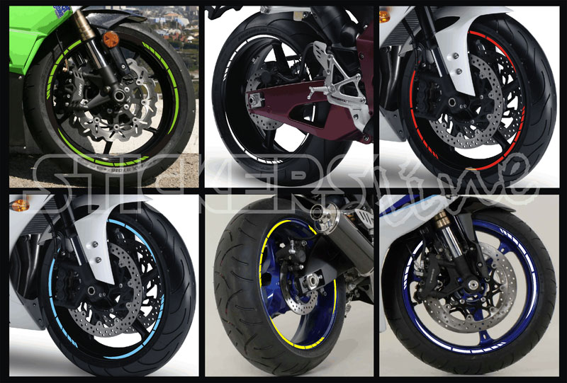 Vendesi kit completo di strisce STANDARD PER TUTTE LE MOTO "lo stile personalizzato di questi adesivi renderà la vostra moto ancora più bella ed aggressiva", (ad ogni lato della ruota andranno applicate tre strisce adesive a mezza luna equidistanti tra di loro (vedi foto in basso), il kit comprende 12 pezzi l'occorrente per la decorazione completa, più 2 pezzi in omaggio), realizzato su misura appositamente per motociclette con cerchi da 17" pollici di qualsiasi anno di fabbricazione, questi adesivi sono già curvati di facile applicazione e velocissimi da montare senza dover smontare le ruote... per un risultato garantito, MIGLIORANDO SENSIBILMENTE L'ESTETICA DELLA VOSTRA MOTO...