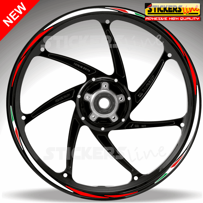 Kit di strisce per cerchi MV Agusta RIVALE versione RACING 4 + bandierine ITALIA, un nuovo design ideato per moto davvero aggressive, formato da due colori a scelta tra le tinte disponibili (leggi sotto). Questi adesivi sono stati realizzati su misura per tutte le moto aventi cerchi da 17 pollici, sono già curvati di facile applicazione e veloci da montare senza dover smontare necessariamente le ruote, per un risultato garantito, MIGLIORANDO SENSIBILMENTE L'ESTETICA DELLA TUA MOTO...