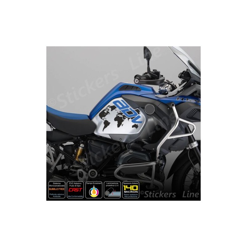 2 Adesivi Serbatoio BMW R 1200 1250 gs Adventure LC GS - GLOBO - blue black
