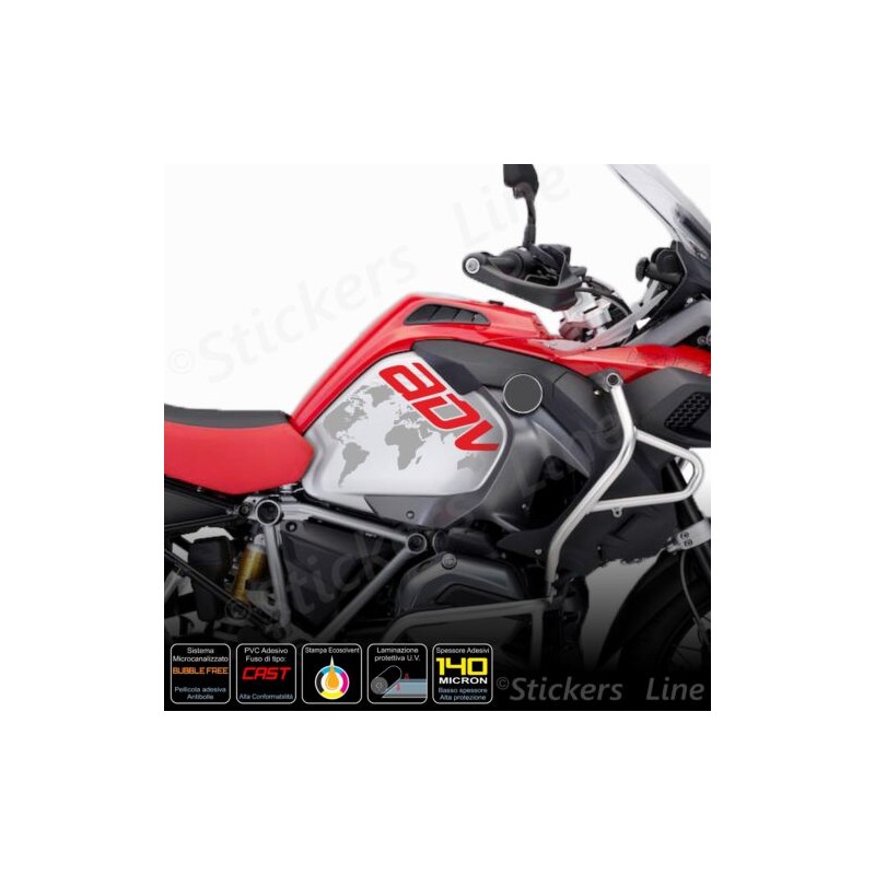 2 Adesivi Serbatoio BMW R 1200 1250 gs Adventure LC GS - GLOBO - red grey