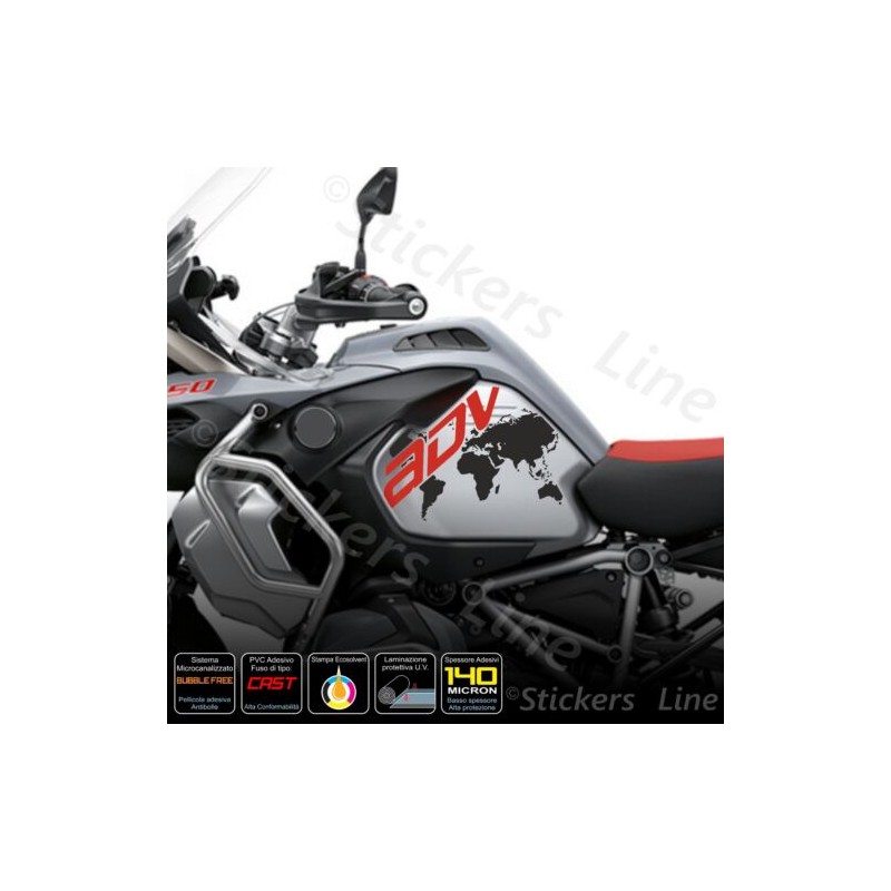 2 Adesivi Serbatoio BMW R 1200 1250 gs Adventure LC GLOBO red - black -