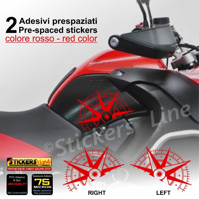 Coppia di adesivi compatibili per fiancate serbatoio BMW R1200 ADVENTURE anno fino al 2012 con scarico a sinistra.COLORE:ROSSO