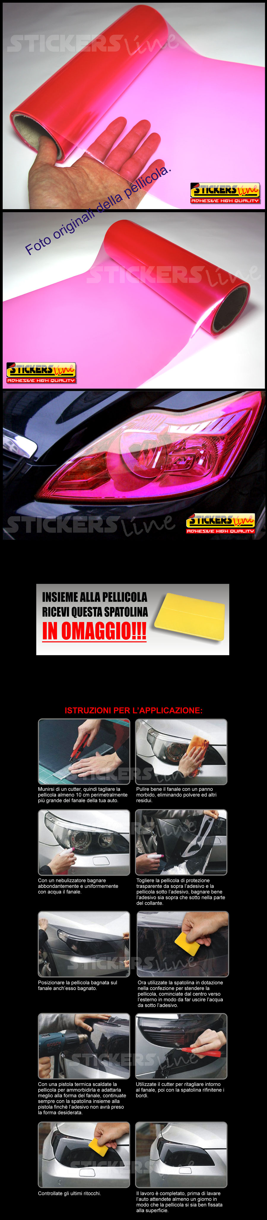 Pellicola adesiva colorata FUCSIA rosa fari fanali auto moto camion cm 30x50