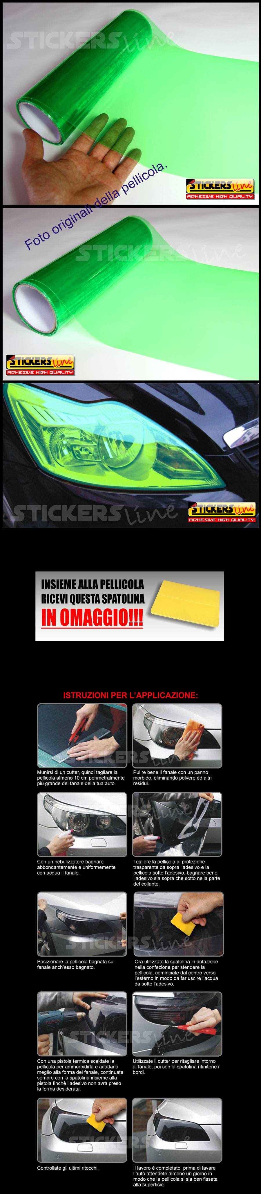 Pellicola adesiva colorata VERDE verdino fari fanali auto moto camion cm 30x25