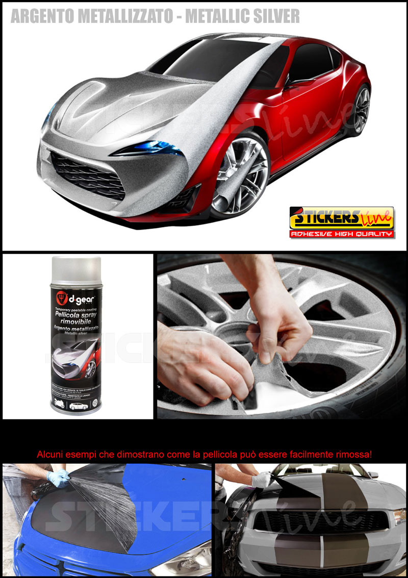 Vernice removibile ARGENTO METALLIZZATO 400ml Pellicola spray D GEAR car wrapping plasti dip cerchi auto moto
