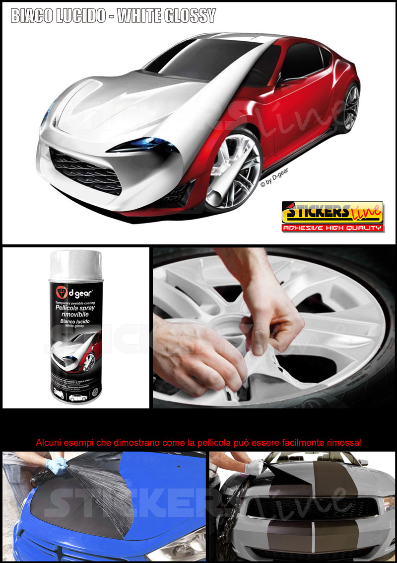 Vernice removibile BIANCO LUCIDO 400ml Pellicola spray D GEAR car wrapping plasti dip cerchi auto moto