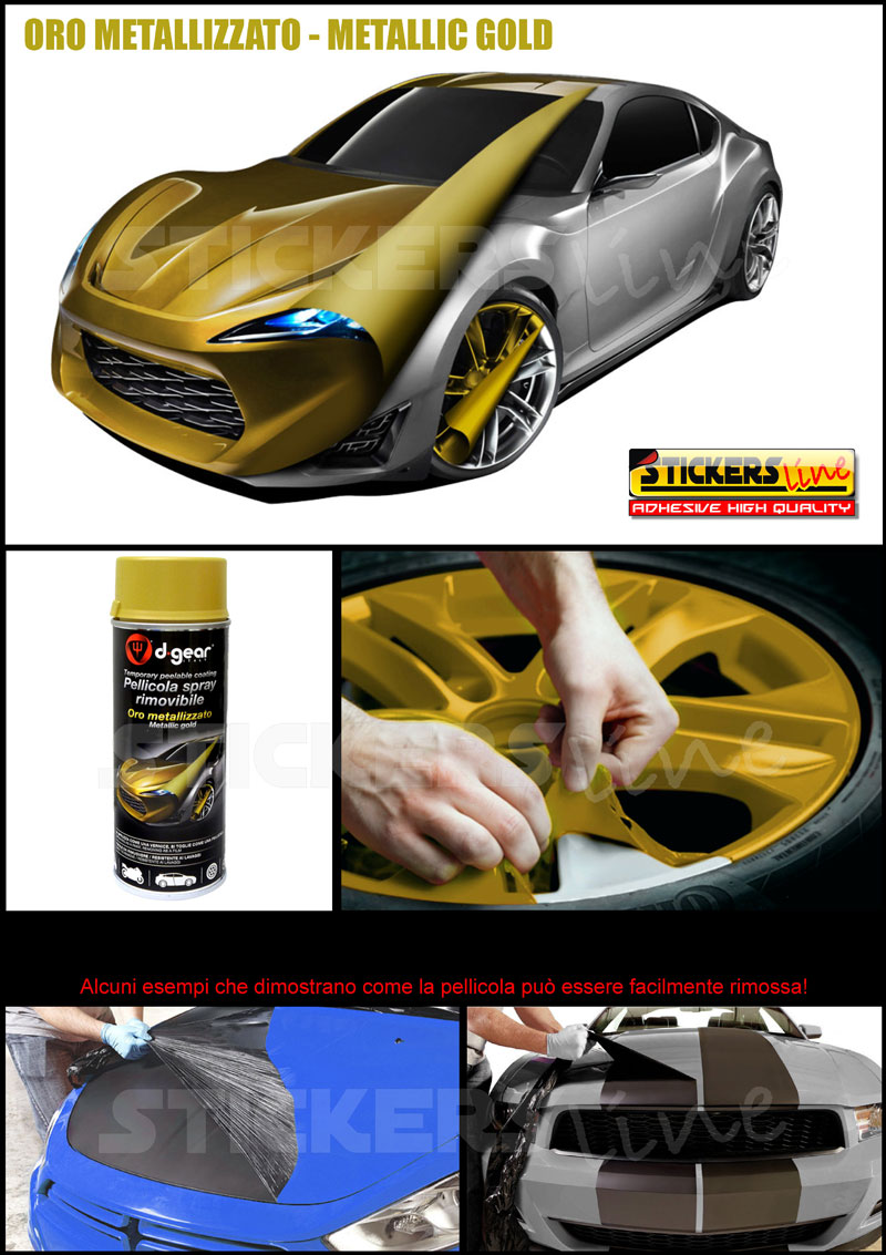 Vernice removibile ORO METALLIZZATO 400ml Pellicola spray D GEAR car wrapping plasti dip cerchi auto moto