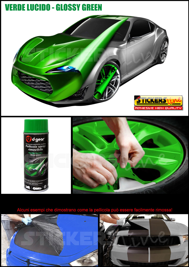Vernice removibile VERDE LUCIDO 400ml Pellicola spray D GEAR car wrapping plasti dip cerchi auto moto